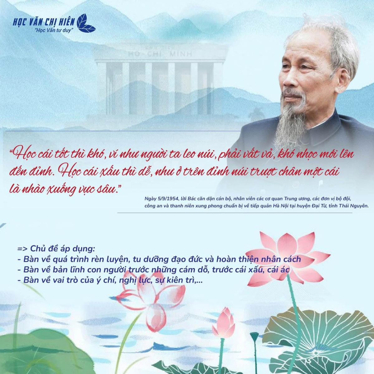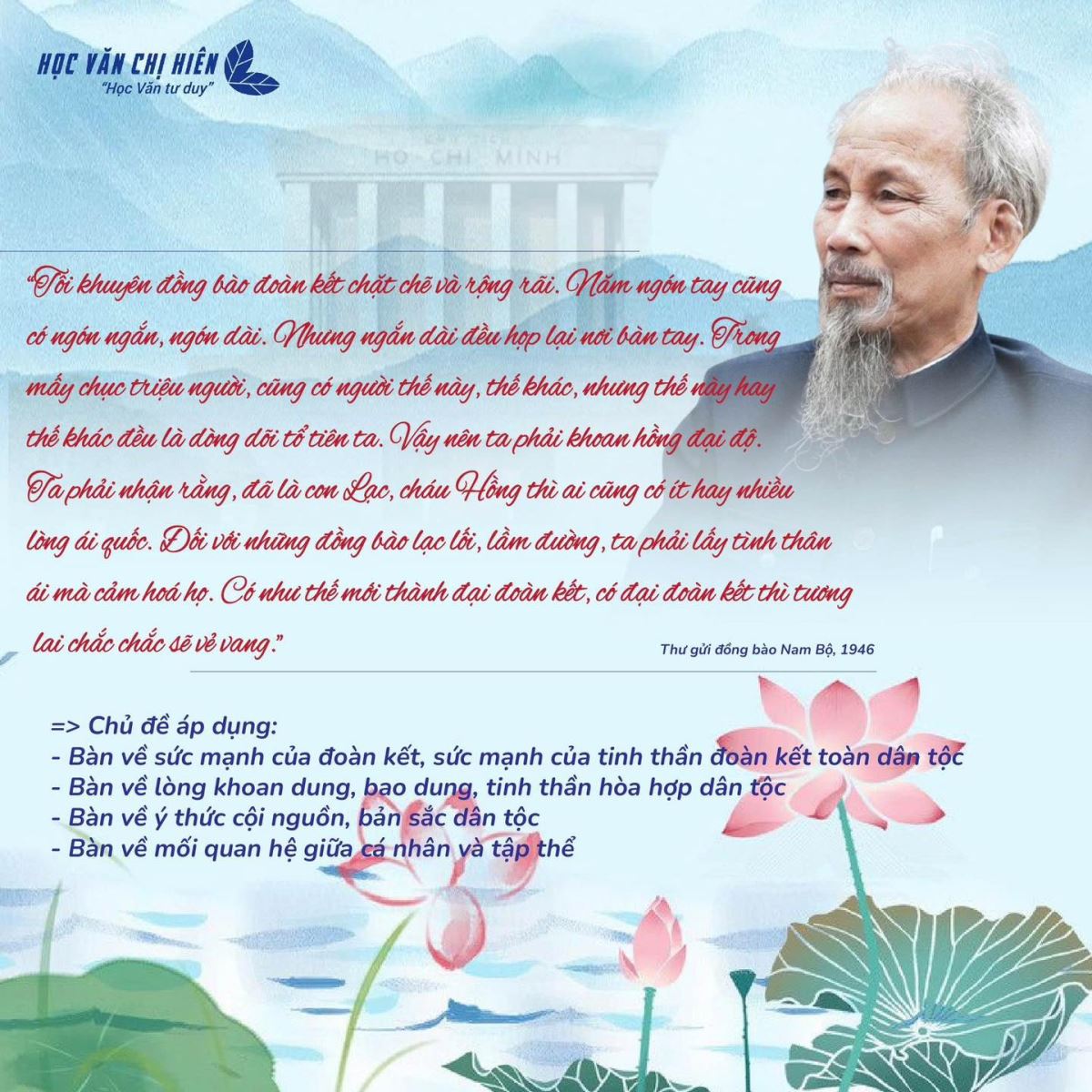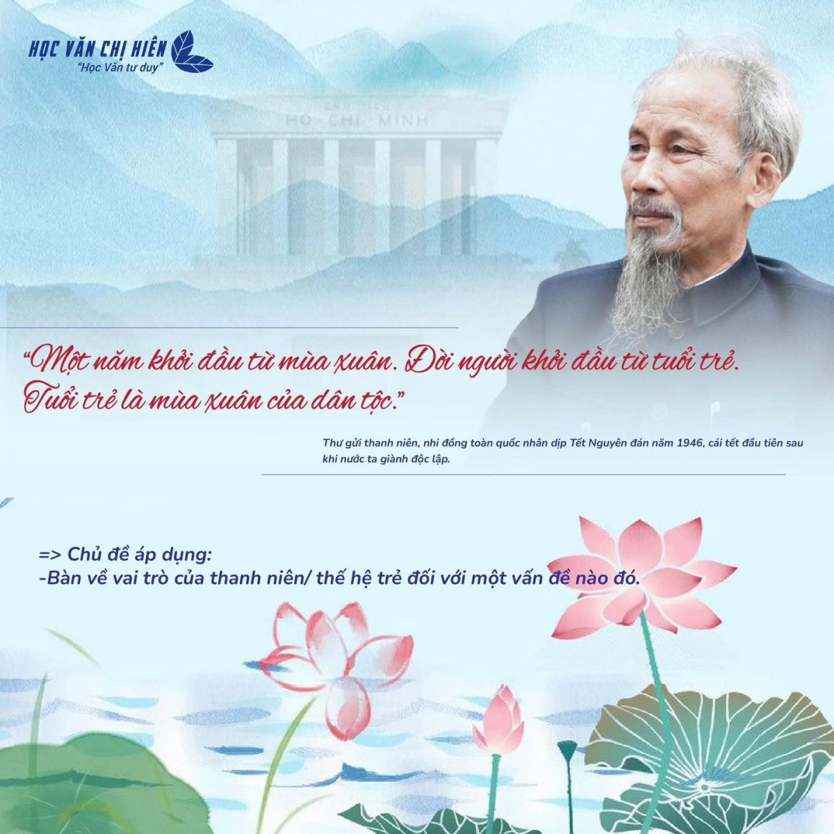 Tổng hợp một số câu nói hay, tiêu biểu của Bác Hồ có thể áp dụng vào một số chủ đề Nghị Luận xã hội thường gặp trong các đề thi
