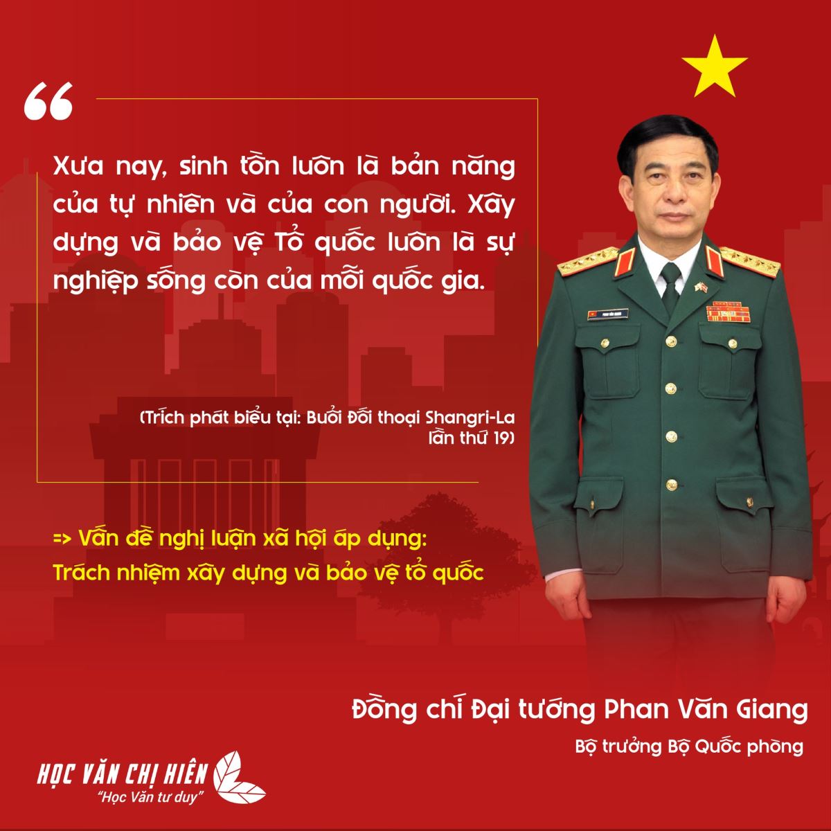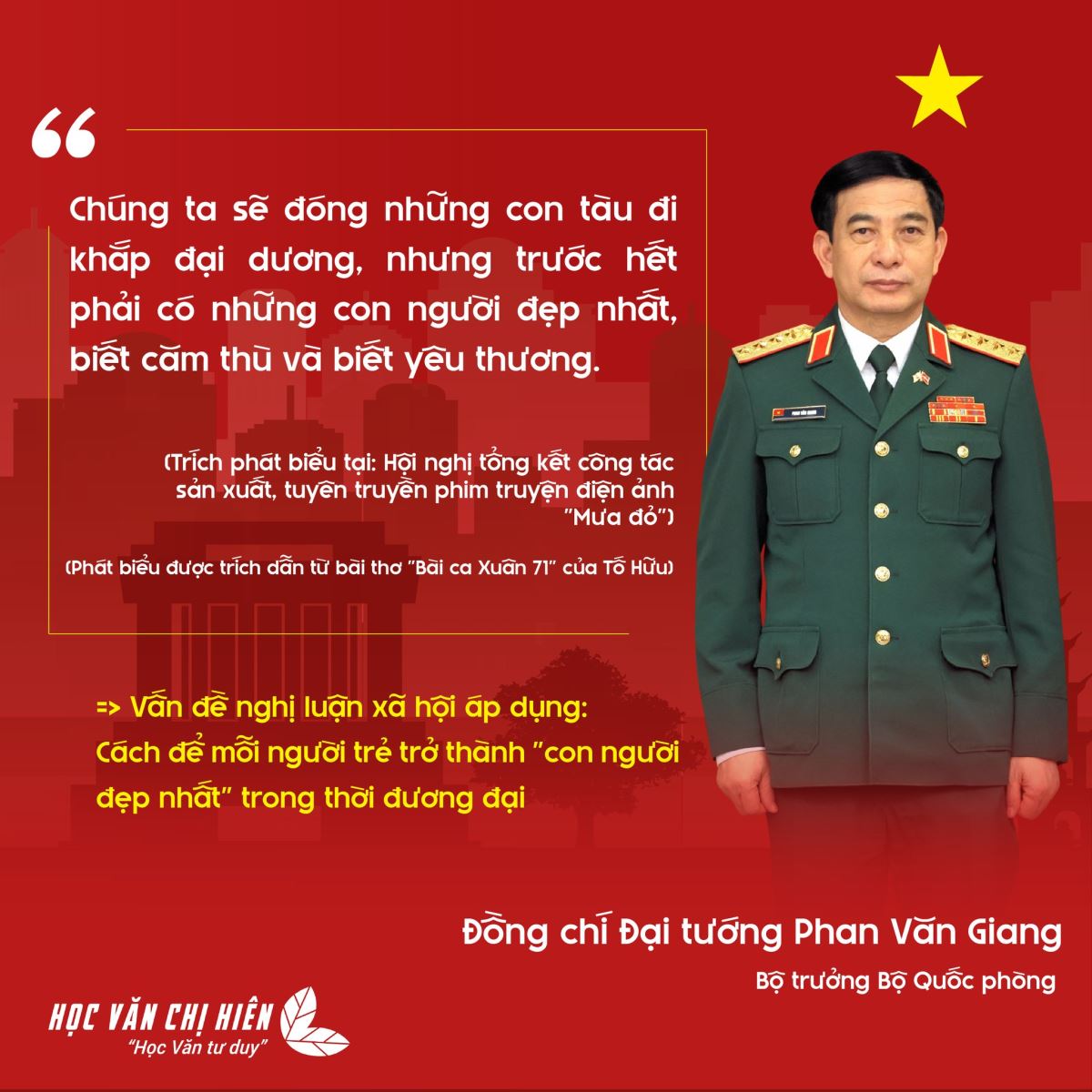 Tổng hợp một số phát biểu tiêu biểu của Đại tướng Phan Văn Giang có thể áp dụng vào một số chủ đề Nghị luận xã hội thường gặp trong các đề thi, mời các em tham khảo nhé!