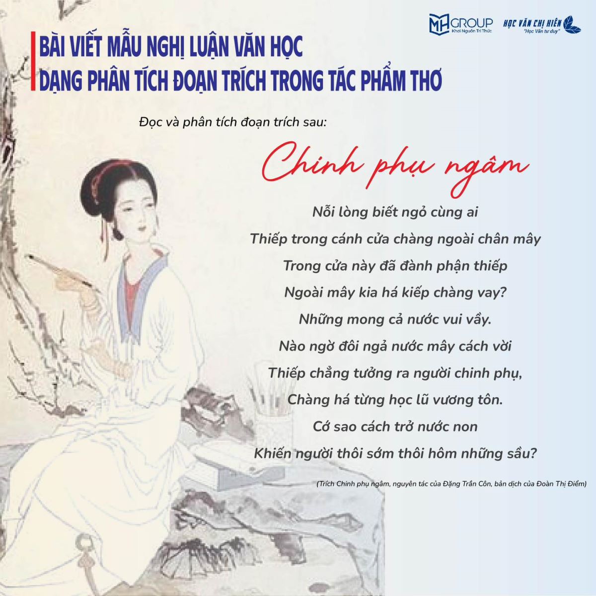 Đề bài: Viết đoạn văn (khoảng 200 chữ) phân tích đoạn trích sau (trích “Chinh phụ ngâm” – Đặng Trần Côn):