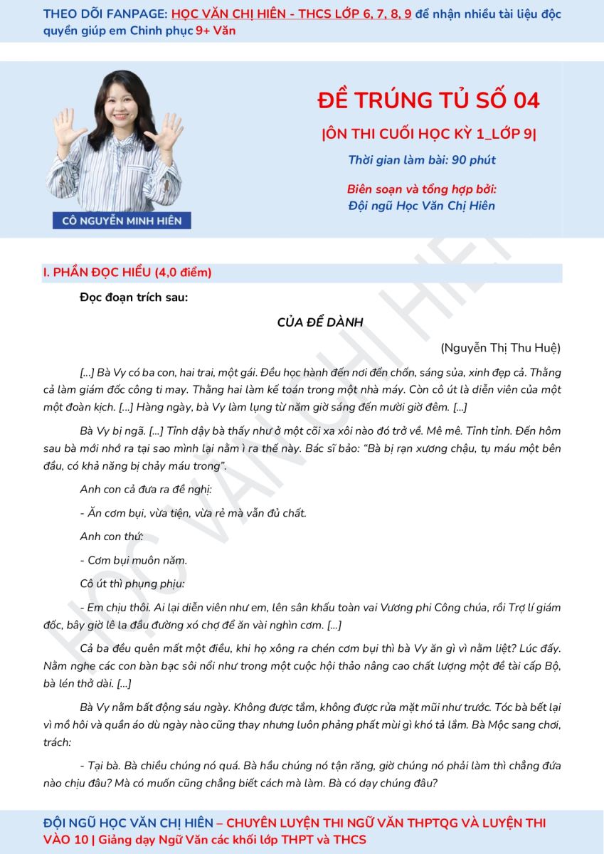 - Fanpage Học Văn Chị Hiên - THCS Lớp 6,7,8,9