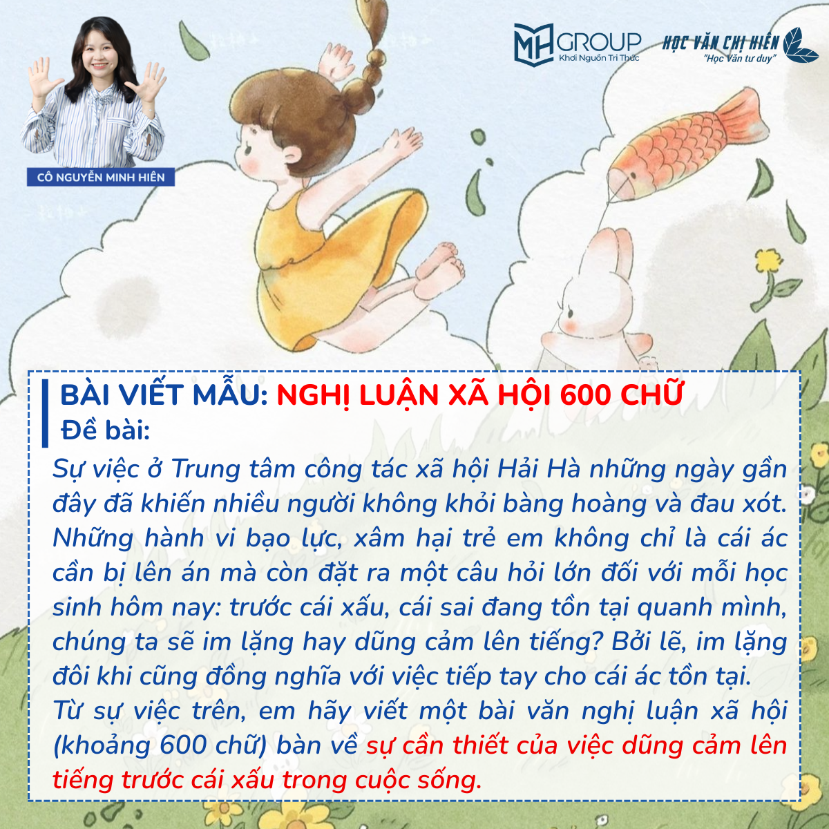 Đề bài: Sự việc ở Trung tâm công tác xã hội Hải Hà những ngày gần đây đã khiến nhiều người không khỏi bàng hoàng và đau xót. Những hành vi bạo lực, xâm hại trẻ em không chỉ là cái ác cần bị lên án mà còn đặt ra một câu hỏi lớn đối với mỗi học sinh hôm nay: trước cái xấu, cái sai đang tồn tại quanh mình, chúng ta sẽ im lặng hay dũng cảm lên tiếng? Bởi lẽ, im lặng đôi khi cũng đồng nghĩa với việc tiếp tay cho cái ác tồn tại.