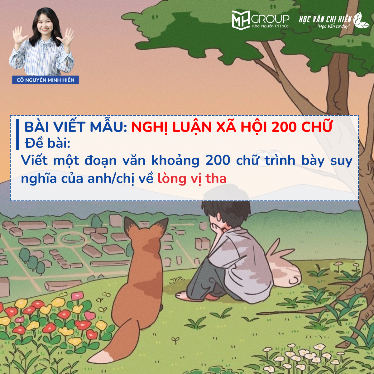 Đề bài: Viết một đoạn văn khoảng 200 chữ trình bày suy nghĩa của anh/chị về lòng vị tha.